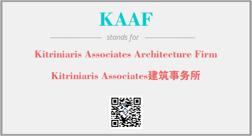 上述内容是“Kitriniaris Associates Architecture Firm”作为“KAAF”的缩写,解释为“Kitriniaris Associates建筑事务所”时的信息,以及英文缩略词KAAF所代表的英文单词,其对应的中文拼音、详细解释以及在英文中的流行度和相关分类、应用领域及应用示例等。