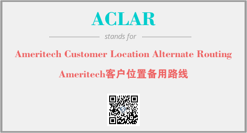 上述内容是“Ameritech Customer Location Alternate Routing”作为“ACLAR”的缩写,解释为“Ameritech客户位置备用路线”时的信息,以及英文缩略词ACLAR所代表的英文单词,其对应的中文拼音、详细解释以及在英文中的流行度和相关分类、应用领域及应用示例等。