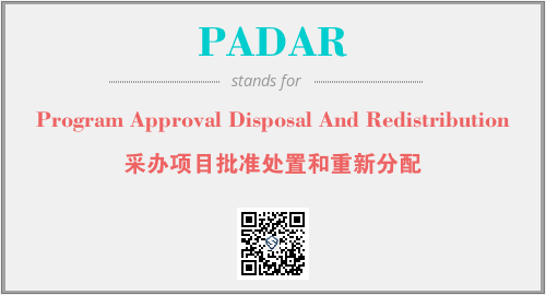 上述内容是“Program Approval Disposal And Redistribution”作为“PADAR”的缩写,解释为“采办项目批准处置和重新分配”时的信息,以及英文缩略词PADAR所代表的英文单词,其对应的中文拼音、详细解释以及在英文中的流行度和相关分类、应用领域及应用示例等。