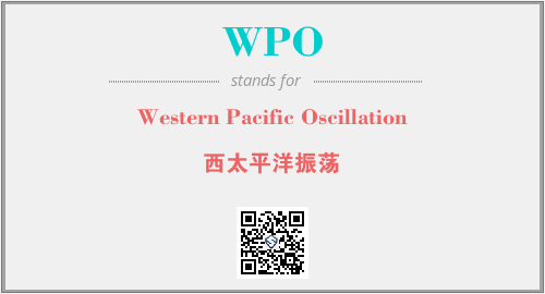以上为Western Pacific Oscillation英文缩略词WPO的中文解释,以及该英文缩写在英语的流行度、分类和应用领域方面的信息。