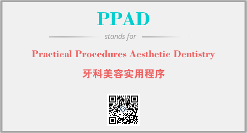 英文缩略词“PPAD”经常作为“Practical Procedures Aesthetic Dentistry”的英文缩写来使用,中文表示:“牙科美容实用程序”。本文将详细介绍英文缩写词PPAD所代表英文单词,其对应的中文拼音、详细解释以及在英语中的流行度。此外,还有关于缩略词PPAD的分类、应用领域及相关应用示例等。