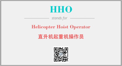 上述内容是“Helicopter Hoist Operator”作为“HHO”的缩写,解释为“直升机起重机操作员”时的信息,以及英文缩略词HHO所代表的英文单词,其对应的中文拼音、详细解释以及在英文中的流行度和相关分类、应用领域及应用示例等。