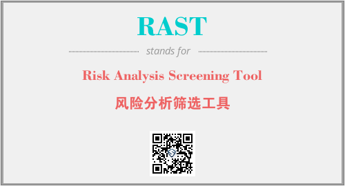 上述内容是“Risk Analysis Screening Tool”作为“RAST”的缩写,解释为“风险分析筛选工具”时的信息,以及英文缩略词RAST所代表的英文单词,其对应的中文拼音、详细解释以及在英文中的流行度和相关分类、应用领域及应用示例等。