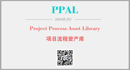 英文缩略词“PPAL”经常作为“Project Process Asset Library”的英文缩写来使用,中文表示:“项目流程资产库”。本文将详细介绍英文缩写词PPAL所代表英文单词,其对应的中文拼音、详细解释以及在英语中的流行度。此外,还有关于缩略词PPAL的分类、应用领域及相关应用示例等。