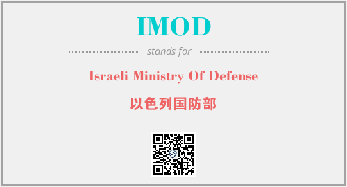 上述内容是“Israeli Ministry Of Defense”作为“IMOD”的缩写,解释为“以色列国防部”时的信息,以及英文缩略词IMOD所代表的英文单词,其对应的中文拼音、详细解释以及在英文中的流行度和相关分类、应用领域及应用示例等。