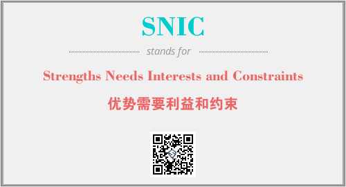 上述内容是“Strengths Needs Interests and Constraints”作为“SNIC”的缩写,解释为“优势需要利益和约束”时的信息,以及英文缩略词SNIC所代表的英文单词,其对应的中文拼音、详细解释以及在英文中的流行度和相关分类、应用领域及应用示例等。
