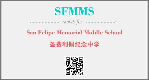 上述内容是“San Felipe Memorial Middle School”作为“SFMMS”的缩写,解释为“圣费利佩纪念中学”时的信息,以及英文缩略词SFMMS所代表的英文单词,其对应的中文拼音、详细解释以及在英文中的流行度和相关分类、应用领域及应用示例等。