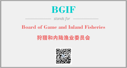 上述内容是“Board of Game and Inland Fisheries”作为“BGIF”的缩写,解释为“狩猎和内陆渔业委员会”时的信息,以及英文缩略词BGIF所代表的英文单词,其对应的中文拼音、详细解释以及在英文中的流行度和相关分类、应用领域及应用示例等。
