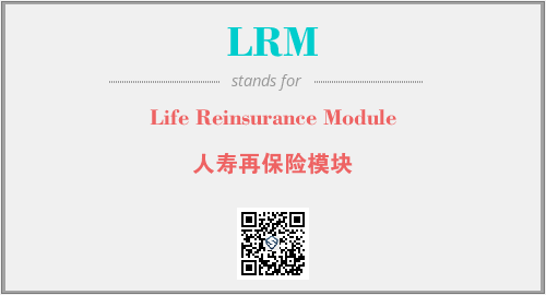 上述内容是“Life Reinsurance Module”作为“LRM”的缩写,解释为“人寿再保险模块”时的信息,以及英文缩略词LRM所代表的英文单词,其对应的中文拼音、详细解释以及在英文中的流行度和相关分类、应用领域及应用示例等。