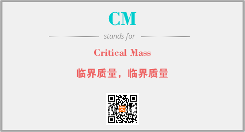 英文缩略词“CM”经常作为“Critical Mass”的英文缩写来使用,中文表示:“临界质量,临界质量”。本文将详细介绍英文缩写词CM所代表英文单词,其对应的中文拼音、详细解释以及在英语中的流行度。此外,还有关于缩略词CM的分类、应用领域及相关应用示例等。