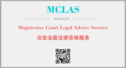 上述内容是“Magistrates Court Legal Advice Service”作为“MCLAS”的缩写,解释为“治安法庭法律咨询服务”时的信息,以及英文缩略词MCLAS所代表的英文单词,其对应的中文拼音、详细解释以及在英文中的流行度和相关分类、应用领域及应用示例等。