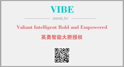上述内容是“Valiant Intelligent Bold and Empowered”作为“VIBE”的缩写,解释为“英勇智能大胆授权”时的信息,以及英文缩略词VIBE所代表的英文单词,其对应的中文拼音、详细解释以及在英文中的流行度和相关分类、应用领域及应用示例等。