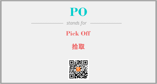 英文缩略词“PO”经常作为“Pick Off”的英文缩写来使用,中文表示:“拾取”。本文将详细介绍英文缩写词PO所代表英文单词,其对应的中文拼音、详细解释以及在英语中的流行度。此外,还有关于缩略词PO的分类、应用领域及相关应用示例等。