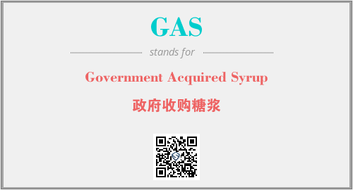 英文缩略词“GAS”经常作为“Government Acquired Syrup”的英文缩写来使用,中文表示:“政府收购糖浆”。本文将详细介绍英文缩写词GAS所代表英文单词,其对应的中文拼音、详细解释以及在英语中的流行度。此外,还有关于缩略词GAS的分类、应用领域及相关应用示例等。