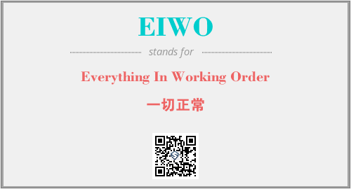 上述内容是“Everything In Working Order”作为“EIWO”的缩写,解释为“一切正常”时的信息,以及英文缩略词EIWO所代表的英文单词,其对应的中文拼音、详细解释以及在英文中的流行度和相关分类、应用领域及应用示例等。