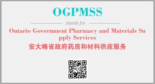 上述内容是“Ontario Government Pharmacy and Materials Supply Services”作为“OGPMSS”的缩写,解释为“安大略省政府药房和材料供应服务”时的信息,以及英文缩略词OGPMSS所代表的英文单词,其对应的中文拼音、详细解释以及在英文中的流行度和相关分类、应用领域及应用示例等。