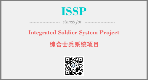 上述内容是“Integrated Soldier System Project”作为“ISSP”的缩写,解释为“综合士兵系统项目”时的信息,以及英文缩略词ISSP所代表的英文单词,其对应的中文拼音、详细解释以及在英文中的流行度和相关分类、应用领域及应用示例等。