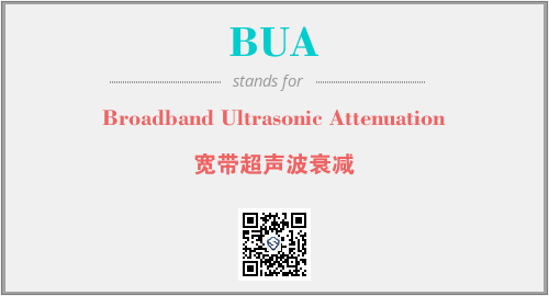上述内容是“Broadband Ultrasonic Attenuation”作为“BUA”的缩写,解释为“宽带超声波衰减”时的信息,以及英文缩略词BUA所代表的英文单词,其对应的中文拼音、详细解释以及在英文中的流行度和相关分类、应用领域及应用示例等。
