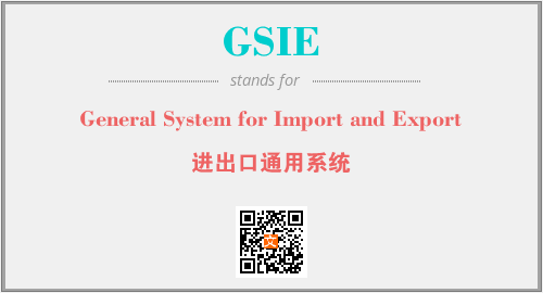 英文缩略词“GSIE”经常作为“General System for Import and Export”的英文缩写来使用,中文表示:“进出口通用系统”。本文将详细介绍英文缩写词GSIE所代表英文单词,其对应的中文拼音、详细解释以及在英语中的流行度。此外,还有关于缩略词GSIE的分类、应用领域及相关应用示例等。