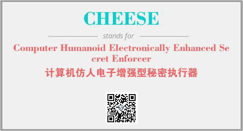 上述内容是“Computer Humanoid Electronically Enhanced Secret Enforcer”作为“CHEESE”的缩写,解释为“计算机仿人电子增强型秘密执行器”时的信息,以及英文缩略词CHEESE所代表的英文单词,其对应的中文拼音、详细解释以及在英文中的流行度和相关分类、应用领域及应用示例等。