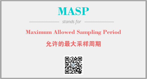 上述内容是“Maximum Allowed Sampling Period”作为“MASP”的缩写,解释为“允许的最大采样周期”时的信息,以及英文缩略词MASP所代表的英文单词,其对应的中文拼音、详细解释以及在英文中的流行度和相关分类、应用领域及应用示例等。