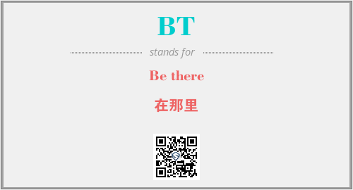 以上为Be there英文缩略词BT的中文解释,以及该英文缩写在英语的流行度、分类和应用领域方面的信息。