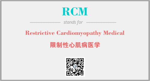 上述内容是“Restrictive Cardiomyopathy Medical”作为“RCM”的缩写,解释为“限制性心肌病医学”时的信息,以及英文缩略词RCM所代表的英文单词,其对应的中文拼音、详细解释以及在英文中的流行度和相关分类、应用领域及应用示例等。