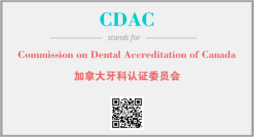 上述内容是“Commission on Dental Accreditation of Canada”作为“CDAC”的缩写,解释为“加拿大牙科认证委员会”时的信息,以及英文缩略词CDAC所代表的英文单词,其对应的中文拼音、详细解释以及在英文中的流行度和相关分类、应用领域及应用示例等。