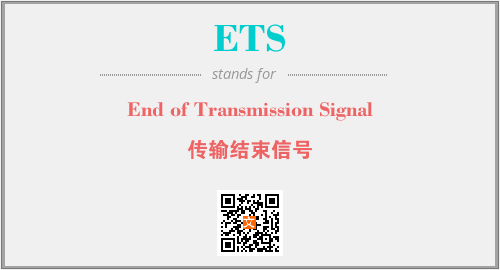 英文缩略词“ETS”经常作为“End of Transmission Signal”的英文缩写来使用,中文表示:“传输结束信号”。本文将详细介绍英文缩写词ETS所代表英文单词,其对应的中文拼音、详细解释以及在英语中的流行度。此外,还有关于缩略词ETS的分类、应用领域及相关应用示例等。