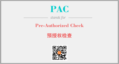 上述内容是“Pre-Authorized Check”作为“PAC”的缩写,解释为“预授权检查”时的信息,以及英文缩略词PAC所代表的英文单词,其对应的中文拼音、详细解释以及在英文中的流行度和相关分类、应用领域及应用示例等。