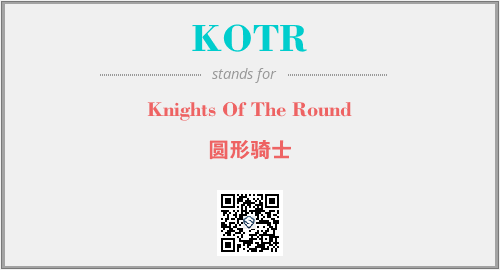 英文缩略词“KOTR”经常作为“Knights Of The Round”的英文缩写来使用,中文表示:“圆形骑士”。本文将详细介绍英文缩写词KOTR所代表英文单词,其对应的中文拼音、详细解释以及在英语中的流行度。此外,还有关于缩略词KOTR的分类、应用领域及相关应用示例等。