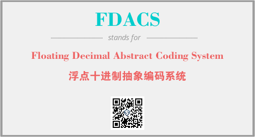 上述内容是“Floating Decimal Abstract Coding System”作为“FDACS”的缩写,解释为“浮点十进制抽象编码系统”时的信息,以及英文缩略词FDACS所代表的英文单词,其对应的中文拼音、详细解释以及在英文中的流行度和相关分类、应用领域及应用示例等。