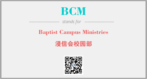 英文缩略词“BCM”经常作为“Baptist Campus Ministries”的英文缩写来使用,中文表示:“浸信会校园部”。本文将详细介绍英文缩写词BCM所代表英文单词,其对应的中文拼音、详细解释以及在英语中的流行度。此外,还有关于缩略词BCM的分类、应用领域及相关应用示例等。