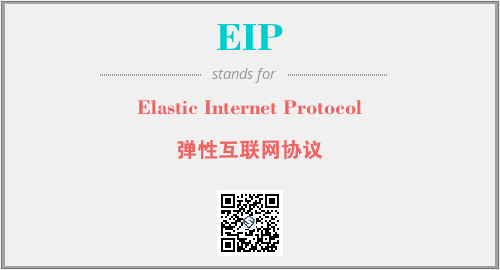 上述内容是“Elastic Internet Protocol”作为“EIP”的缩写,解释为“弹性互联网协议”时的信息,以及英文缩略词EIP所代表的英文单词,其对应的中文拼音、详细解释以及在英文中的流行度和相关分类、应用领域及应用示例等。