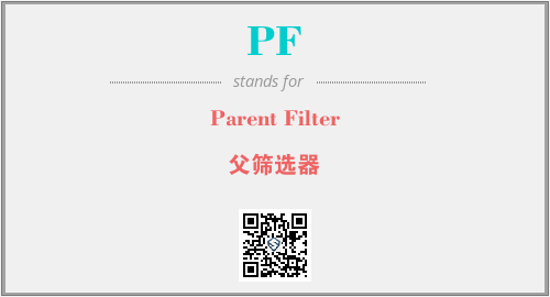 上述内容是“Parent Filter”作为“PF”的缩写,解释为“父筛选器”时的信息,以及英文缩略词PF所代表的英文单词,其对应的中文拼音、详细解释以及在英文中的流行度和相关分类、应用领域及应用示例等。