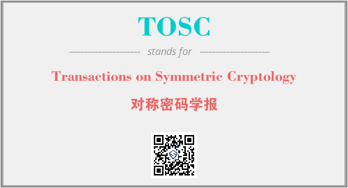 上述内容是“Transactions on Symmetric Cryptology”作为“TOSC”的缩写,解释为“对称密码学报”时的信息,以及英文缩略词TOSC所代表的英文单词,其对应的中文拼音、详细解释以及在英文中的流行度和相关分类、应用领域及应用示例等。