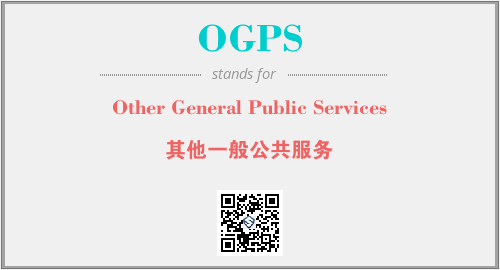 英文缩略词“OGPS”经常作为“Other General Public Services”的英文缩写来使用,中文表示:“其他一般公共服务”。本文将详细介绍英文缩写词OGPS所代表英文单词,其对应的中文拼音、详细解释以及在英语中的流行度。此外,还有关于缩略词OGPS的分类、应用领域及相关应用示例等。