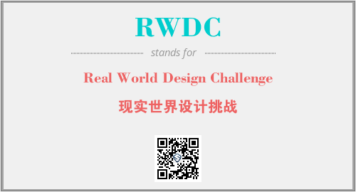 英文缩略词“RWDC”经常作为“Real World Design Challenge”的英文缩写来使用,中文表示:“现实世界设计挑战”。本文将详细介绍英文缩写词RWDC所代表英文单词,其对应的中文拼音、详细解释以及在英语中的流行度。此外,还有关于缩略词RWDC的分类、应用领域及相关应用示例等。