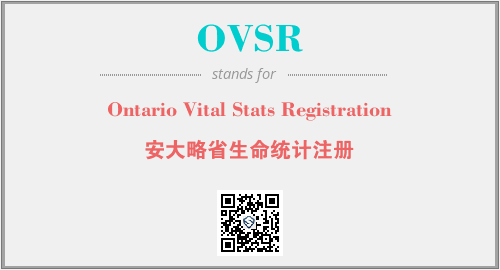 上述内容是“Ontario Vital Stats Registration”作为“OVSR”的缩写,解释为“安大略省生命统计注册”时的信息,以及英文缩略词OVSR所代表的英文单词,其对应的中文拼音、详细解释以及在英文中的流行度和相关分类、应用领域及应用示例等。