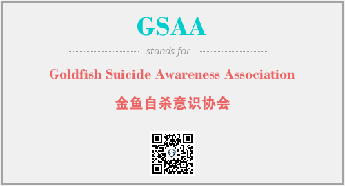 上述内容是“Goldfish Suicide Awareness Association”作为“GSAA”的缩写,解释为“金鱼自杀意识协会”时的信息,以及英文缩略词GSAA所代表的英文单词,其对应的中文拼音、详细解释以及在英文中的流行度和相关分类、应用领域及应用示例等。