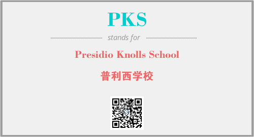 英文缩略词“PKS”经常作为“Presidio Knolls School”的英文缩写来使用,中文表示:“普利西学校”。本文将详细介绍英文缩写词PKS所代表英文单词,其对应的中文拼音、详细解释以及在英语中的流行度。此外,还有关于缩略词PKS的分类、应用领域及相关应用示例等。