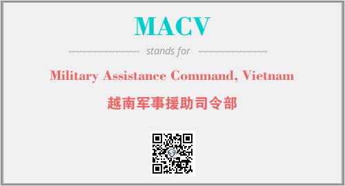 英文缩略词“MACV”经常作为“Military Assistance Command, Vietnam”的英文缩写来使用,中文表示:“越南军事援助司令部”。本文将详细介绍英文缩写词MACV所代表英文单词,其对应的中文拼音、详细解释以及在英语中的流行度。此外,还有关于缩略词MACV的分类、应用领域及相关应用示例等。