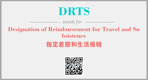 上述内容是“Designation of Reimbursement for Travel and Subsistence”作为“DRTS”的缩写,解释为“指定差旅和生活报销”时的信息,以及英文缩略词DRTS所代表的英文单词,其对应的中文拼音、详细解释以及在英文中的流行度和相关分类、应用领域及应用示例等。