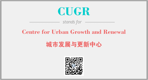 上述内容是“Centre for Urban Growth and Renewal”作为“CUGR”的缩写,解释为“城市发展与更新中心”时的信息,以及英文缩略词CUGR所代表的英文单词,其对应的中文拼音、详细解释以及在英文中的流行度和相关分类、应用领域及应用示例等。