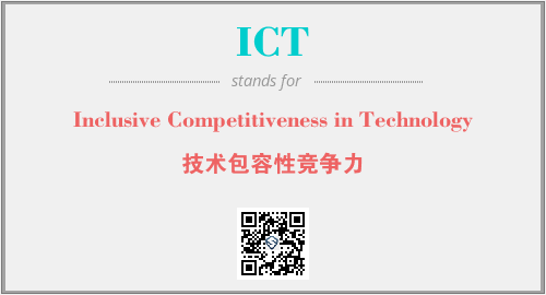 上述内容是“Inclusive Competitiveness in Technology”作为“ICT”的缩写,解释为“技术包容性竞争力”时的信息,以及英文缩略词ICT所代表的英文单词,其对应的中文拼音、详细解释以及在英文中的流行度和相关分类、应用领域及应用示例等。