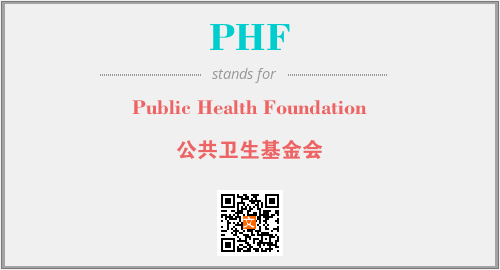 英文缩略词“PHF”经常作为“Public Health Foundation”的英文缩写来使用,中文表示:“公共卫生基金会”。本文将详细介绍英文缩写词PHF所代表英文单词,其对应的中文拼音、详细解释以及在英语中的流行度。此外,还有关于缩略词PHF的分类、应用领域及相关应用示例等。