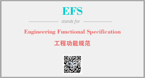 英文缩略词“EFS”经常作为“Engineering Functional Specification”的英文缩写来使用,中文表示:“工程功能规范”。本文将详细介绍英文缩写词EFS所代表英文单词,其对应的中文拼音、详细解释以及在英语中的流行度。此外,还有关于缩略词EFS的分类、应用领域及相关应用示例等。
