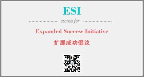 英文缩略词“ESI”经常作为“Expanded Success Initiative”的英文缩写来使用,中文表示:“扩展成功倡议”。本文将详细介绍英文缩写词ESI所代表英文单词,其对应的中文拼音、详细解释以及在英语中的流行度。此外,还有关于缩略词ESI的分类、应用领域及相关应用示例等。