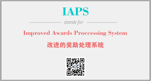 上述内容是“Improved Awards Proccessing System”作为“IAPS”的缩写,解释为“改进的奖励处理系统”时的信息,以及英文缩略词IAPS所代表的英文单词,其对应的中文拼音、详细解释以及在英文中的流行度和相关分类、应用领域及应用示例等。