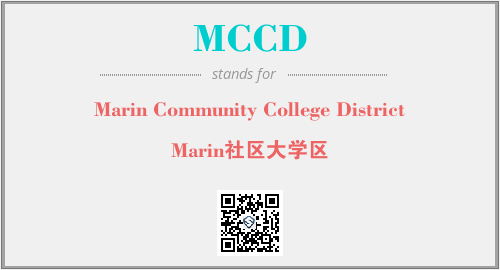 上述内容是“Marin Community College District”作为“MCCD”的缩写,解释为“Marin社区大学区”时的信息,以及英文缩略词MCCD所代表的英文单词,其对应的中文拼音、详细解释以及在英文中的流行度和相关分类、应用领域及应用示例等。